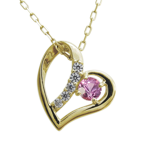 オープンハート ネックレス ピンクサファイア ネックレス K18 ペンダント