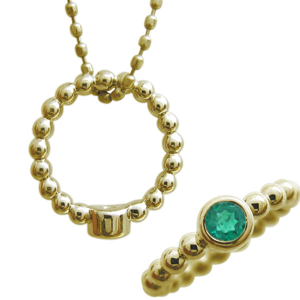 ![]() 5月誕生石エメラルドを使用した、18金製のベビーリングネックレスペンダントです。 ヨーロッパの古い伝統から生まれた”ベビーリング” 赤ちゃんが生まれた記念として贈られるメモリアルジュエリー 小さなリングに、元気に育って欲しいという愛が詰まっているエタニティボールリングです。