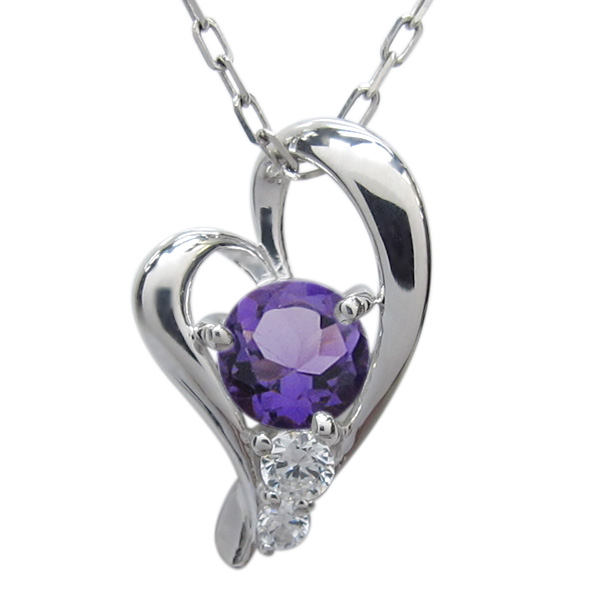2月誕生石アメジストを使用したプラチナ製のオープンハートをモチーフにしたネックレスペンダントです。
