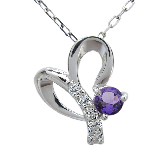プラチナ・アメジスト・ネックレス・オープンハート・ハート・ペンダント