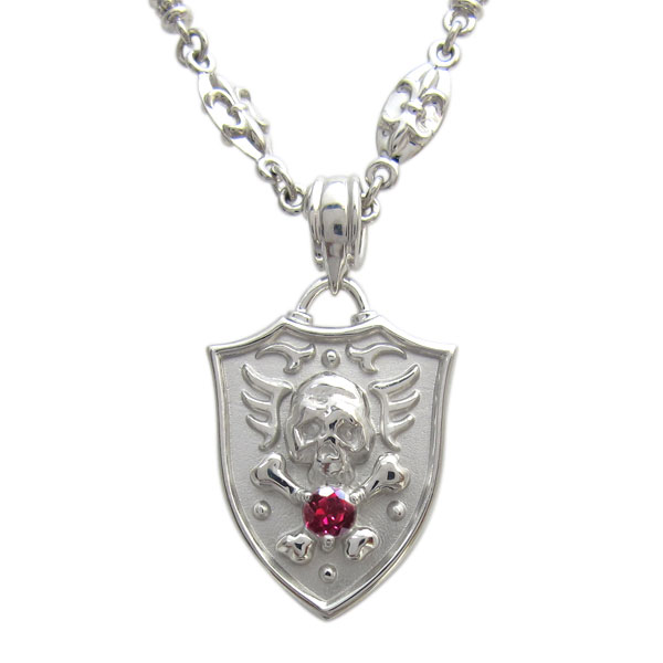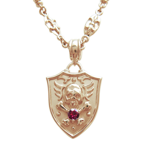 ![]() 7月誕生石ルビーを使用した、18金製の スカル(骸骨)モチーフメンズ・ネックレスペンダントです。 スカルとボーンを立体的に造形した目を引くデザイン。 ハードになり過ぎないデザインなので、女性にもおすすめのスカル(骸骨)モチーフネックレスです。