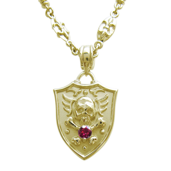 メンズ 骸骨 ルビーネックレス ドクロペンダント K18