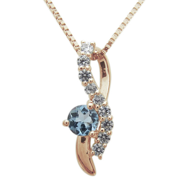 3月誕生石アクアマリンサンタマリアを使用した10金製の、結婚10周年にお勧めメモリアルネックレスペンダント。