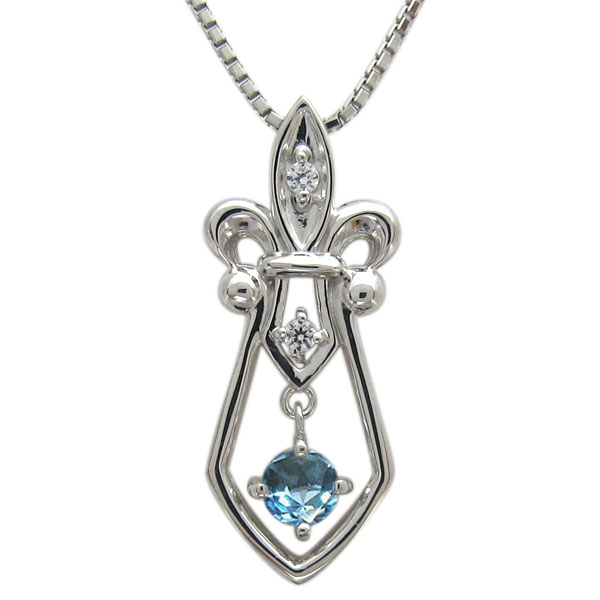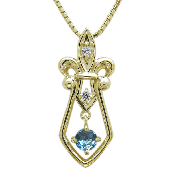 メンズ ネックレス ダガー 百合の紋章 ブルートパーズ ペンダント K10