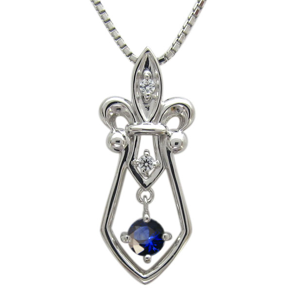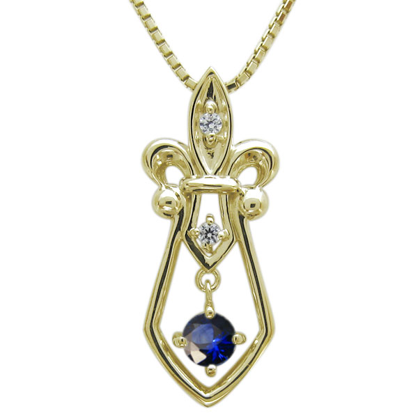 9月誕生石サファイアを使用した18金製のダガー(短剣)&百合の紋章デザインメンズ・ネックレスペンダントです。