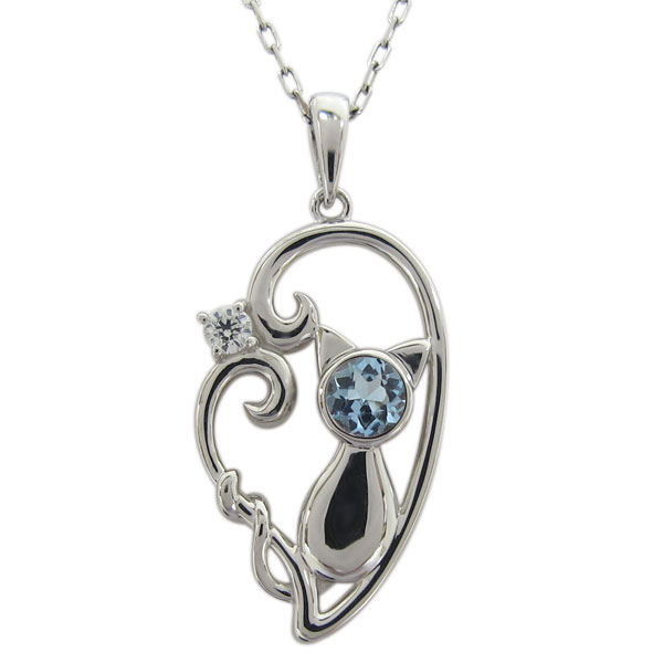 ![]() 3月誕生石アクアマリンサンタマリアを使用した18金製の 猫(ネコ)&ハートモチーフネックレスペンダントです。 オープンハートにちょこんと腰かけた猫が、キュートなネックレスペンダント。 記念日や誕生日プレゼント自分へのご褒美、クリスマスプレゼント、 結婚記念日、ホワイトデー、などの贈り物にお勧めです。
