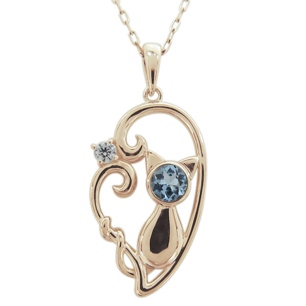 アクアマリンサンタマリアネックレス ねこ 猫 ハートネックレス K18 ペンダント