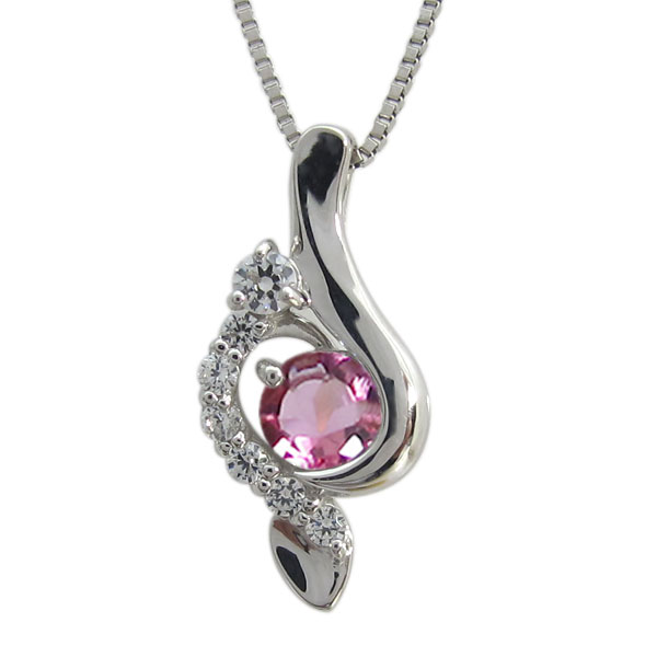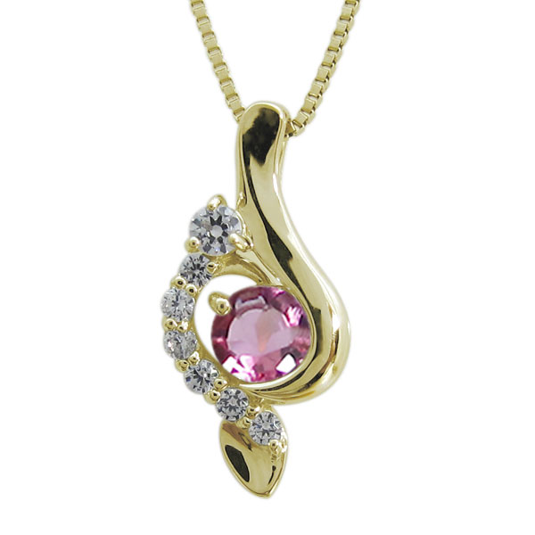 10月誕生石ピンクトルマリンを一粒使用した、18金製のト音記号(音符)モチーフネックレスペンダントです。
