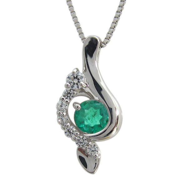 5月誕生石エメラルドを一粒使用した、10金製のト音記号(音符)モチーフネックレスペンダントです。