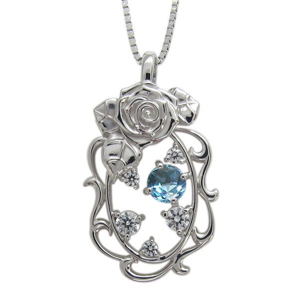 薔薇 ネックレス 唐草 ペンダント ブルートパーズネックレス