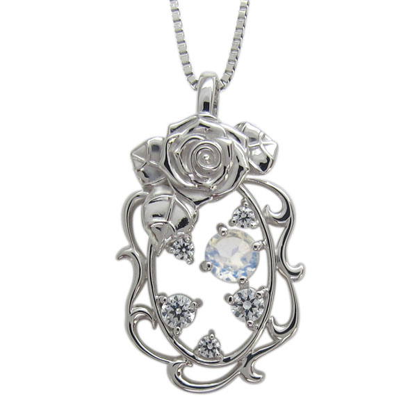 ![]() 6月誕生石ロイヤルブルームーンストーンを使用した10金製の 唐草(アラベスク)&薔薇(ローズ)モチーフネックレスペンダントです。 ローズガーデンをイメージさせるような上品でエレガントな、ネックレスペンダント。 あなたの胸元を可憐に演出してくれます。