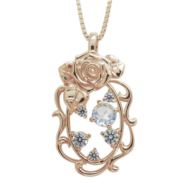 ロイヤルブルームーンストーン ネックレス 薔薇 アラベスク ローズ ペンダント 10金