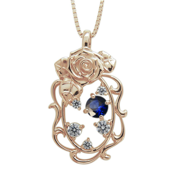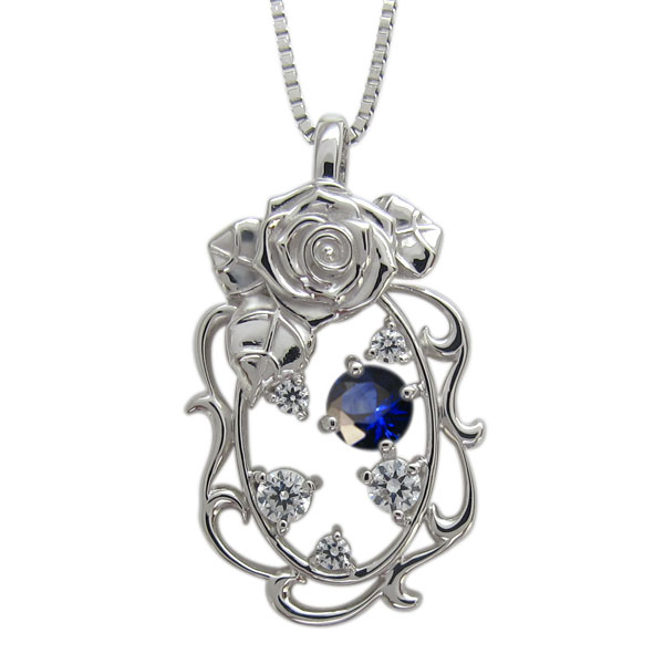 薔薇 ネックレス 唐草 ペンダント サファイアネックレス