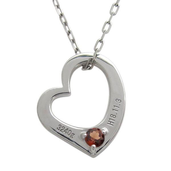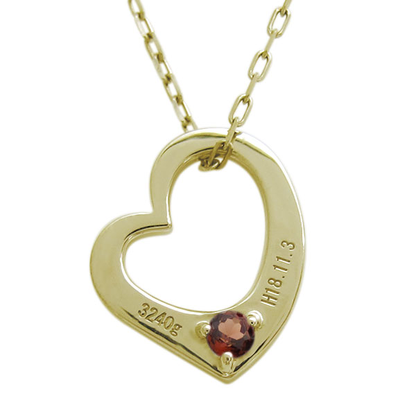 1月誕生石ガーネットを使用した、10金製のハートモチーフベビーリング(ネックレス)です。