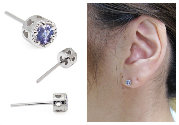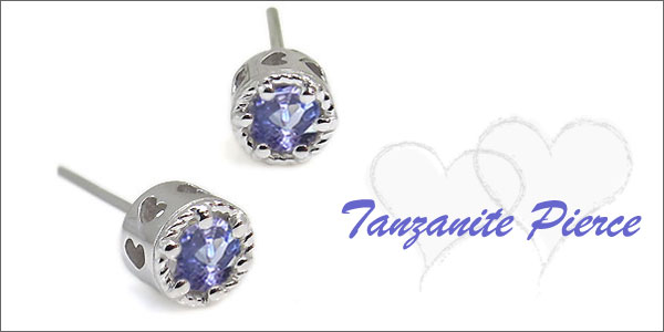 プラチナ・ピアス・ハート・一粒・タンザナイトピアス