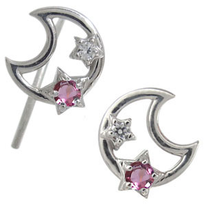 ピンクトルマリン ピアス 星 月 無くさない ピアス