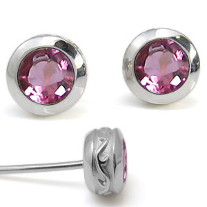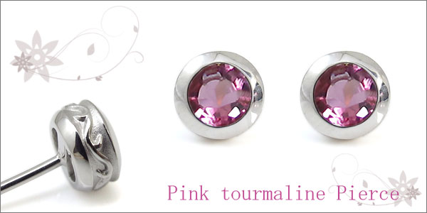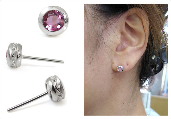 メンズ・ピンクトルマリン・ピアス・10月誕生石・一粒・ピンクトルマリンピアス