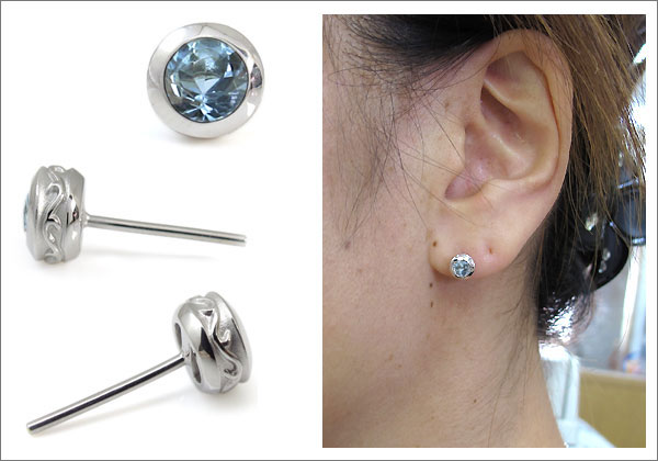 | プラチナ・メンズ・ピアス・唐草・一粒・アクアマリンピアス | ||||||||||||||||