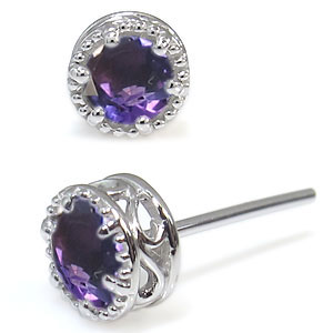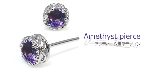 | 2月誕生石アメジストを一粒使用した唐草模様のアンティークデザインプラチナ製ピアスです。 記念日や誕生日プレゼント、自分へのご褒美、クリスマスプレゼント、結婚記念日などの贈り物にお勧めです。 | ||||||||||||||||