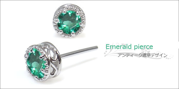 | 5月誕生石エメラルドを一粒使用した唐草模様のアンティークデザイン18金製ピアスです。 記念日や誕生日プレゼント、自分へのご褒美、クリスマスプレゼント、結婚記念日などの贈り物にお勧めです。 | ||||||||||||||||