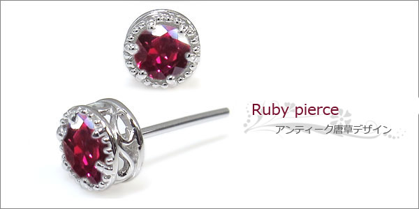 | 7月誕生石ルビーを一粒使用した唐草模様のアンティークデザインプラチナ製ピアスです。 記念日や誕生日プレゼント、自分へのご褒美、クリスマスプレゼント、結婚記念日などの贈り物にお勧めです。 | ||||||||||||||||