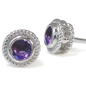 アメジスト ピアス 2月誕生石 18金 一粒 アメジストピアス