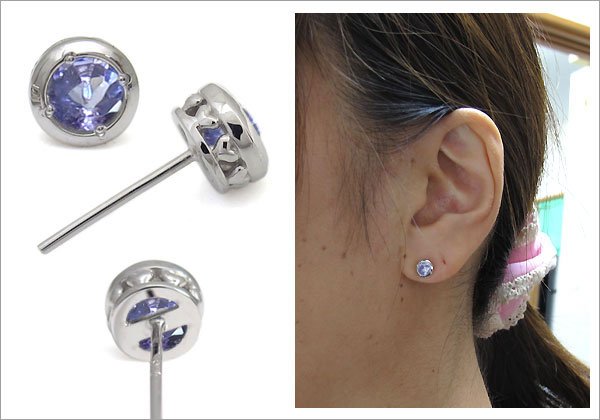 12月誕生石タンザナイトを一粒使用した10金製ピアスです。