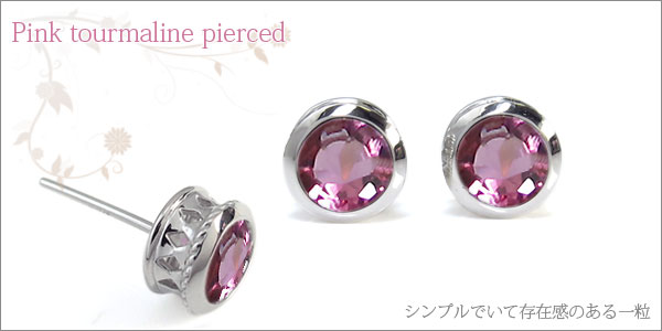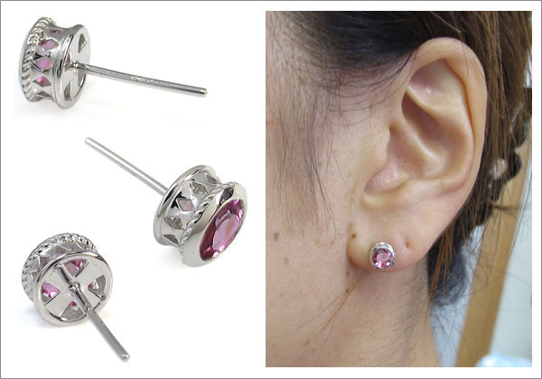 10月誕生石ピンクトルマリンを一粒使用した縄デザインのプラチナ製ピアスです。裏面のクロスモチーフでさり気ないおしゃれを。