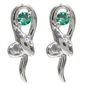 5月誕生石エメラルドを使用した10金製の蛇(スネーク)モチーフピアスです。