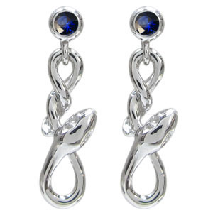 9月誕生石サファイアを一粒使用した、蛇(スネーク)モチーフのプラチナ製ピアスです。 「金運をアップさせる縁起の良い蛇をモチーフにしたスネークピアス。 記念日や誕生日プレゼント、クリスマスなどの贈り物にもお勧めです。