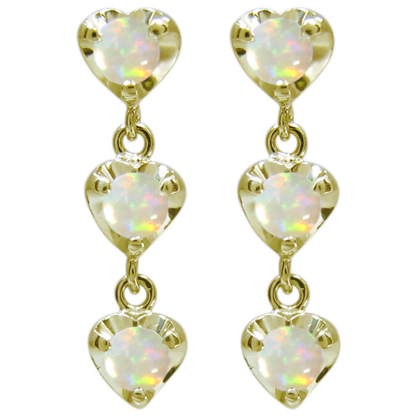 ![]() 10月誕生石オパールを一粒使用した、10金製の ゆらゆら揺れるトリロジーデザイン、ハートモチーフピアスです。 ご自分へのご褒美や記念日、誕生日プレゼントなどの贈り物にもお勧めです。