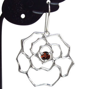 1月誕生石ガーネットを使用した、10金製の薔薇モチーフフックピアスです。 記念日や誕生日プレゼント、クリスマス、結婚記念日などの贈り物にもお勧めです。