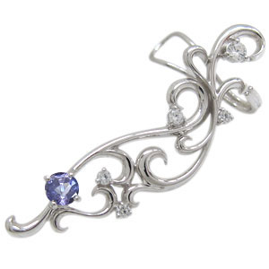 ※写真は左耳専用となります ※片耳1個での販売となりますので、両耳1ペアをご希望の場合は、2個ご購入くださいませ。 12月誕生石タンザナイトを使用した18金製のイヤーカフ・ピアスです。 耳に沿ってカーブしたしなやかで繊細な唐草模様が、 美しく優しい女性をイメージさせるデザインです。 煌めく天然石が耳元をお洒落で華やかに演出し、 普段使いにはもちろん、パーティーシーンにも活躍のイヤーカフ・ピアスです。