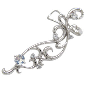 ※写真は左耳専用となります ※片耳1個での販売となりますので、両耳1ペアをご希望の場合は、2個ご購入くださいませ。 6月誕生石ロイヤルブルームーンストーンを使用した18金製のイヤーカフ・ピアスです。 耳に沿ってカーブしたしなやかで繊細な唐草模様が、 美しく優しい女性をイメージさせるデザインです。 煌めく天然石が耳元をお洒落で華やかに演出し、 普段使いにはもちろん、パーティーシーンにも活躍のイヤーカフ・ピアスです。