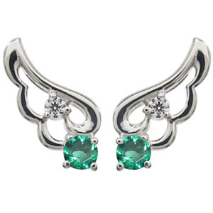 5月誕生石エメラルドを一粒使用したプラチナ製の、天使の羽根(エンジェル)モチーフピアスです。