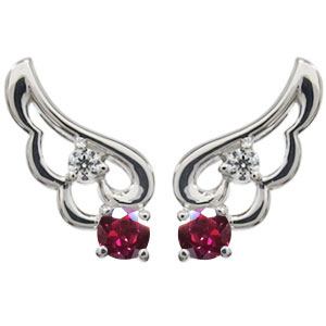 天使の羽 ルビー ピアス 一粒 エンジェル ピアス