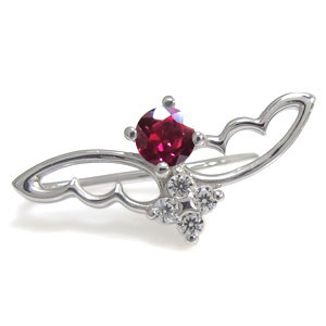 7月誕生石ルビーを使用し、羽根をモチーフにした18金製のイヤーカフ・ピアスです。
