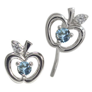 3月誕生石アクアマリンサンタマリアを使用した、リンゴモチーフの18金製ピアスです。