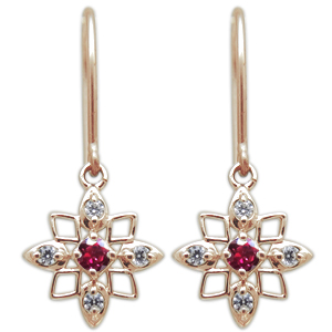 | 7月誕生石ルビーを一粒使用した、星(スター)モチーフの10金製フックピアスです。 ご自分へのご褒美や記念日、誕生日プレゼントなどの贈り物にもお勧めです。 | ||||||||||||||