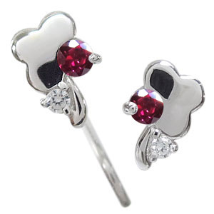 7月誕生石ルビーを使用した、プラチナ製クローバー(四つ葉)モチーフピアスです。 「幸運を呼ぶ」という言い伝えがある四つ葉のクローバーが、愛らしくあなたの耳元で輝きます。