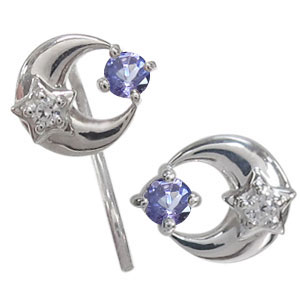 12月誕生石タンザナイトを使用した三日月(ムーン)と星(スター)をモチーフにした10金製ピアスです。