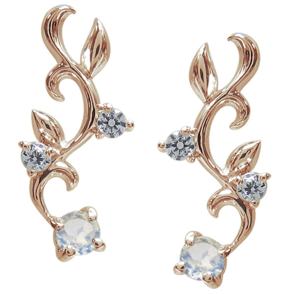 6月誕生石ロイヤルブルームーンストーンを使用した、10金製の唐草(アラベスク)デザインピアスです。