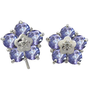 12月誕生石タンザナイトを使用したプラチナ製の、フラワー(花)モチーフピアスです。