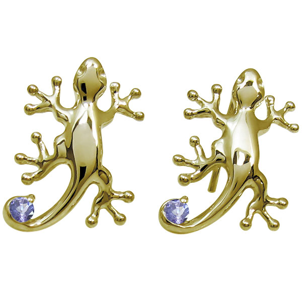12月誕生石タンザナイトを一粒使用した10金製の可愛いヤモリモチーフピアスです。