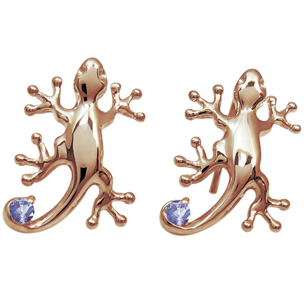 12月誕生石タンザナイトを一粒使用した18金製の可愛いヤモリモチーフピアスです。