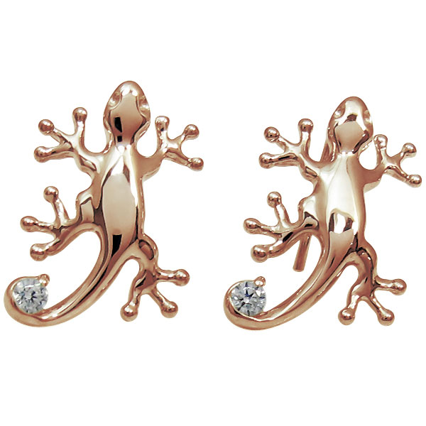 4月誕生石ダイヤモンドを一粒使用した18金製の可愛いヤモリモチーフピアスです。