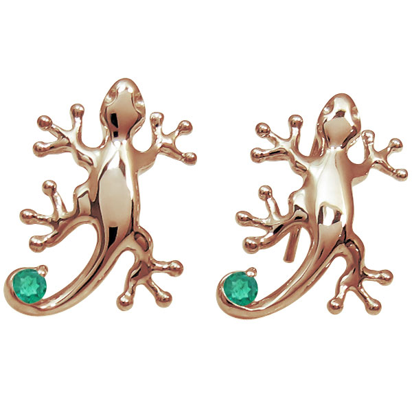 5月誕生石エメラルドを一粒使用した18金製の可愛いヤモリモチーフピアスです。