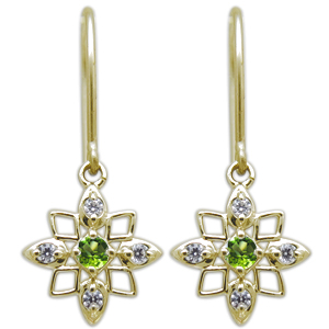 8月誕生石ペリドットを使用した、星(スター)モチーフの18金製フックピアスです。