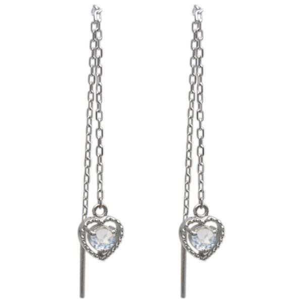 プラチナ ロイヤルブルームーンストーンピアス ゆれる ロングピアス ハートピアス かわいい
