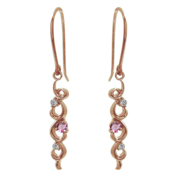 ピアス ピンクトルマリン フックピアス 唐草 18金 アメリカンフック